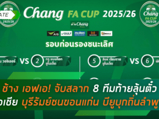 โผเดือดช้าง เอฟเอ! จับสลาก 8 ทีมท้ายลุ้นตั๋วเอเชีย บุรีรัมย์ชนขอนแก่น บียูบุกถิ่นลำพูน