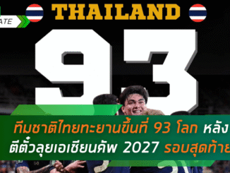 ช้างศึกพุ่งไม่หยุด! ทีมชาติไทยทะยานขึ้นที่ 93 โลก หลังตีตั๋วลุยเอเชียนคัพ 2027 รอบสุดท้าย