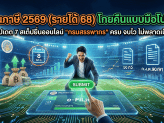 อัปเดตวิธียื่นภาษี 2569 (รายได้ปี 2568) กับกรมสรรพากร แบบละเอียด 7 ขั้นตอนยื่นภาษีออนไลน์ผ่าน e-Filing พร้อมเดดไลน์ยื่นถึง 8 เม.ย. 2569 เช็ก D-MyTax เอกสารที่ต้องเตรียม วิธีลุ้นคืนภาษีและข้อควรระวังครบจบในบทความเดียว