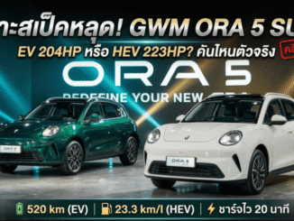 เปิดสเป็ค GWM ORA 5 SUV จัดเต็มทั้ง EV และ HEV – มิติตัวถัง 4,471 มม. EV 204 แรงม้า วิ่ง 520 กม. ชาร์จ DC 120 kW พร้อม V2L ส่วน HEV เทอร์โบไฮบริด 223 แรงม้า ประหยัด 23.3 กม./ล. ลุ้นเปิดราคา Motor Show 2026