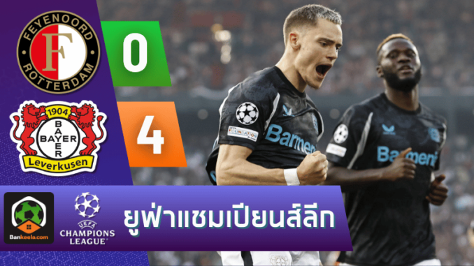 ผลบอลยูฟ่าแชมเปียนส์ลีก 2024 ระหว่าง เฟเยนูร์ด ร็อตเธอร์ดัม 0-4 ไบเออร์ เลเวอร์คูเซิน วันนี้ 20/9/67