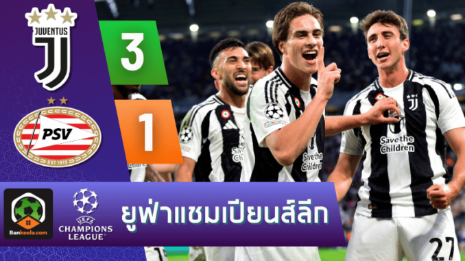 ผลบอลยูฟ่าแชมเปียนส์ลีก 2024 ระหว่าง ยูเวนตุส 3-1 พีเอสวี ไอนด์โฮเฟ่น วันนี้ 18/9/67