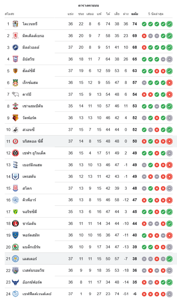 สถานการณ์ในตารางคะแนนแชมเปี้ยนชิพ อังกฤษ