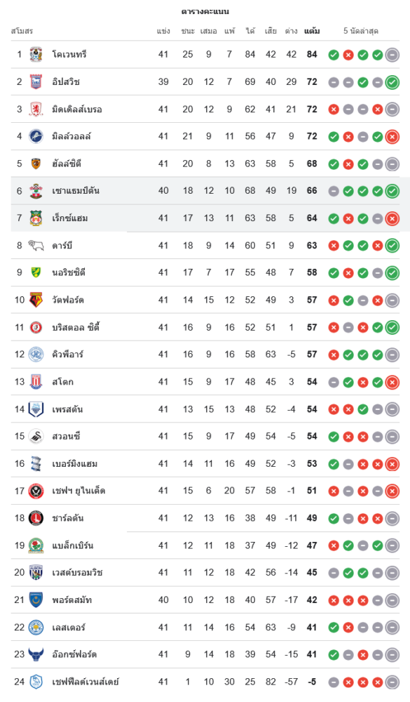 สถานการณ์ในตารางคะแนนแชมเปี้ยนชิพ อังกฤษ
