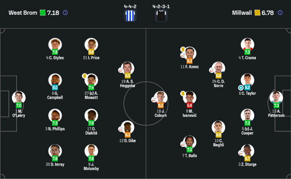 เคเล็บ เทย์เลอร์ คือกำแพงเหล็กของมิลล์วอลล์ในเกมนี้ เขาอ่านเกมดี เข้าสกัดแม่น และยืนตำแหน่งได้แข็งแกร่งตลอดทั้ง 90 นาที โดยเฉพาะช่วงท้ายที่เวสต์บรอมบุกกดดันหนัก เทย์เลอร์ยังคุมแนวรับได้อยู่หมัด จึงไม่แปลกที่เขาจะคว้าตำแหน่งผู้เล่นยอดเยี่ยมของเกมไปครอง