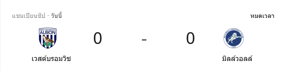 ศึก แชมเปี้ยนชิพ อังกฤษ คู่นี้จบแบบไม่มีผู้ชนะ เมื่อเวสต์บรอมวิช อัลเบี้ยน เปิดบ้านเสมอ มิลล์วอลล์ 0-0 ในเกมที่สกอร์อาจเงียบ แต่รูปเกมไม่เงียบตาม โดยทั้งสองทีมมีจังหวะลุ้นกันตลอด ทำให้แฟนบอลที่ตามเช็ก ผลบอลสด และลุ้น บ้านผลบอล ต้องเกาะหน้าจอจนวินาทีสุดท้าย