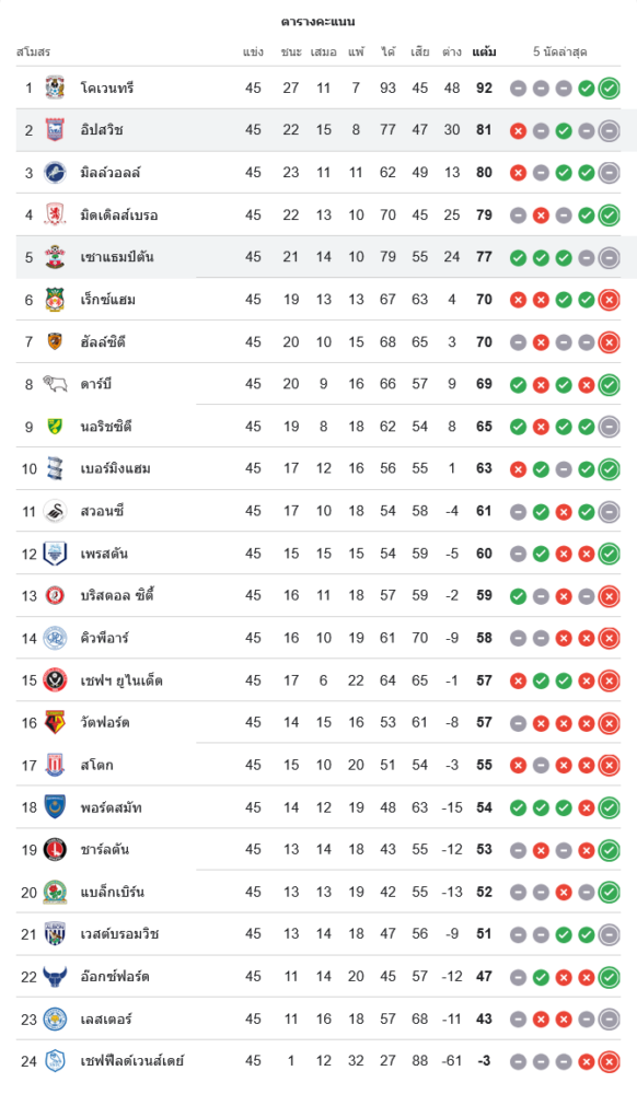 - ⚽ นาที 88-89 อิปสวิชเกือบแซงชนะ ดาร์เนลล์ เฟอร์ลอง โหม่งเฉียดออก และ แจ็ค คลาร์ก ยิงชนเสาขวา