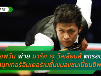 เทพไชยา “เอฟวัน” ต้านไม่ไหว พ่าย มาร์ค เจ วิลเลียมส์ 1-6 ตกรอบ 32 คน สนุกเกอร์อินเตอร์เนชั่นแนลแชมเปี้ยนชิพ