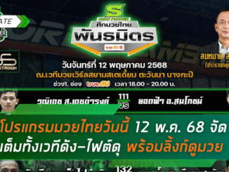 โปรแกรมมวยไทยวันนี้ 12 พ.ค. 68 จัดเต็มทั้งเวทีดัง-ไฟต์ดุ พร้อมลิ้งก์ ดูมวยไทย สดครบทุกคู่ผ่าน BANKEELA