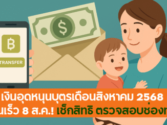 เงินอุดหนุนบุตรเดือนสิงหาคม 2568 โอนเร็ว 8 ส.ค.! เช็กสิทธิ ตรวจสอบช่องทาง ย้ำผู้ปกครองอย่าชะล่าใจ