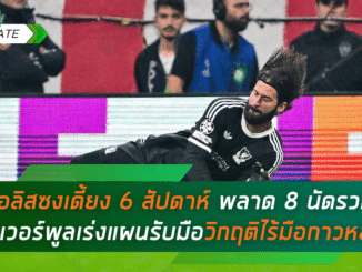 หงส์แดงสะเทือน! อลิสซงเดี้ยง 6 สัปดาห์ พลาด 8 นัดรวด – ลิเวอร์พูลเร่งแผนรับมือวิกฤติไร้มือกาวตัวหลัก