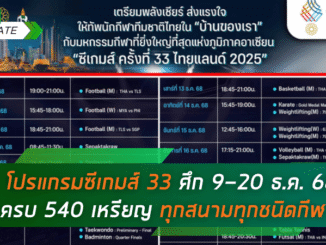 โปรแกรมซีเกมส์ 33 ระเบิดศึก 9-20 ธ.ค. 68 เช็กครบ 540 เหรียญ ทุกสนาม ทุกชนิดกีฬา แฟนไทยห้ามกระพริบตา