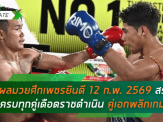 ผลมวยศึกเพชรยินดี 12 ก.พ. 2569 สรุปครบทุกคู่เดือดราชดำเนิน คู่เอกพลิกเกม! แวววาวพ่ายแต้มพลายทองคำ