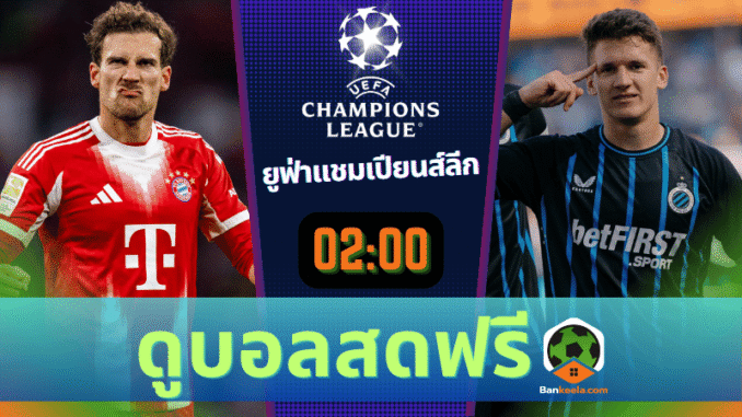 ทางเข้าดูบอลยูฟ่าแชมเปียนส์ลีก ดูบอลสดผ่านช่องทางนี้ได้เลย โปรแกรมบอล ถ่ายทอดสด ทีมบาเยิร์น มิวนิค พบ ทีมคลับบรูซ 22/10/68 ดูบอลออนไลน์ บ้านกีฬา รับลิ้งดูบอลได้แล้วตอนนี้