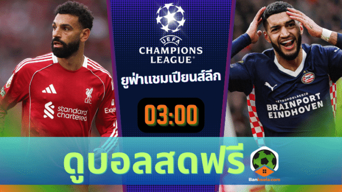 ทางเข้าดูบอลยูฟ่าแชมเปียนส์ลีก ดูบอลสดผ่านช่องทางนี้ได้เลย โปรแกรมบอล ถ่ายทอดสด ทีมลิเวอร์พูล พบ ทีมพีเอสวี ไอนด์โฮเฟ่น 26/11/68 ดูบอลออนไลน์ บ้านกีฬา รับลิ้งดูบอลได้แล้วตอนนี้