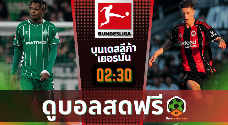 ทางเข้าดูบอลบุนเดสลีกา ดูบอลสดผ่านช่องทางนี้ได้เลย โปรแกรมบอล ถ่ายทอดสด ทีมแวร์เดอร์ เบรเมน พบ ทีมไอน์ทรัค แฟร้งค์เฟิร์ต 16/1/69 ดูบอลออนไลน์ บ้านกีฬา รับลิ้งดูบอลได้แล้วตอนนี้