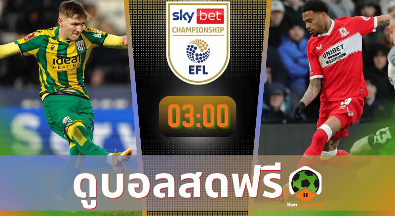 ทางเข้าดูบอลแชมเปี้ยนชิพ อังกฤษ ดูบอลสดผ่านช่องทางนี้ได้เลย โปรแกรมบอล ถ่ายทอดสด ทีมเวสต์บรอมวิช อัลเบี้ยน พบ ทีมมิดเดิ้ลสโบรช์ 16/1/69 ดูบอลออนไลน์ บ้านกีฬา รับลิ้งดูบอลได้แล้วตอนนี้