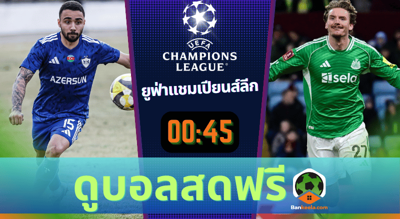 ทางเข้าดูบอลยูฟ่า แชมเปี้ยนส์ ลีก ดูบอลสดผ่านช่องทางนี้ได้เลย โปรแกรมบอล ถ่ายทอดสด ทีมการาบัค พบ ทีมนิวคาสเซิ่ล 18/2/69 ดูบอลออนไลน์ บ้านกีฬา รับลิ้งดูบอลได้แล้วตอนนี้
