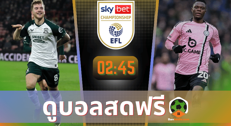 ทางเข้าดูบอลแชมเปี้ยนชิพ อังกฤษ ดูบอลสดผ่านช่องทางนี้ได้เลย โปรแกรมบอล ถ่ายทอดสด ทีมมิดเดิ้ลสโบรช์ พบ ทีมเลสเตอร์ ซิตี้ 24/2/69 ดูบอลออนไลน์ บ้านกีฬา รับลิ้งดูบอลได้แล้วตอนนี้