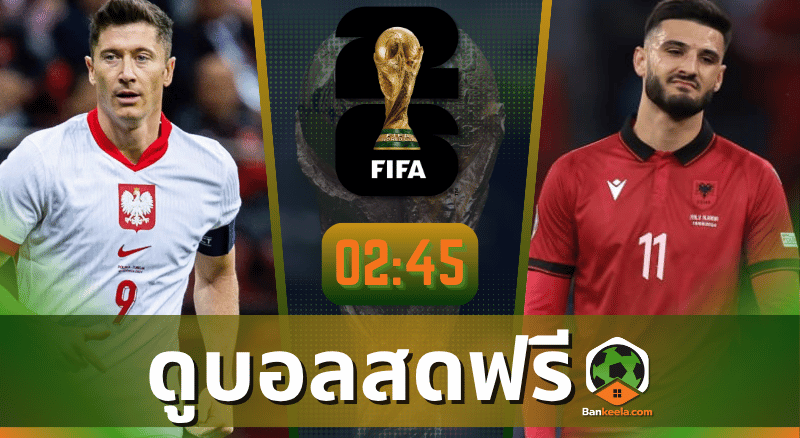 ทางเข้าดูบอลฟุตบอลโลก 2026 รอบคัดเลือก โซนยุโรป ดูบอลสดผ่านช่องทางนี้ได้เลย โปรแกรมบอล ถ่ายทอดสด ทีมโปแลนด์ พบ ทีมแอลเบเนีย 26/3/69 ดูบอลออนไลน์ บ้านกีฬา รับลิ้งดูบอลได้แล้วตอนนี้