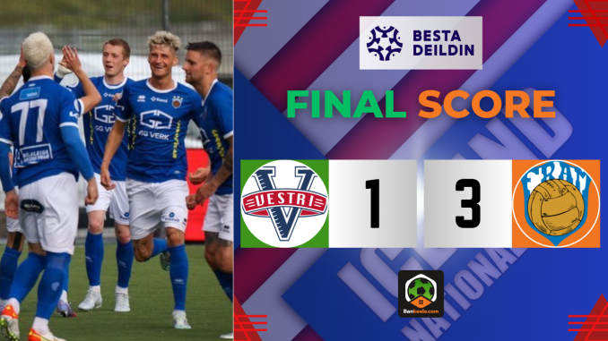 ไอเอฟ เวสตรี พยายามหาจังหวะทำประตูเพื่อตีไข่แตก และในที่สุดความพยายามก็สัมฤทธิ์ผลในช่วงทดเวลาบาดเจ็บนาทีที่ 90+6 เมื่อ อารอน บียาร์นาสัน ยิงประตูตีไข่แตกให้ทีมเจ้าบ้านได้สำเร็จ ทำให้สกอร์จบลงที่ 3-1 แม้ว่า ไอเอฟ เวสตรี จะแพ้ในเกมนี้ แต่พวกเขาแสดงให้เห็นถึงความมุ่งมั่นและพยายามจนถึงนาทีสุดท้าย