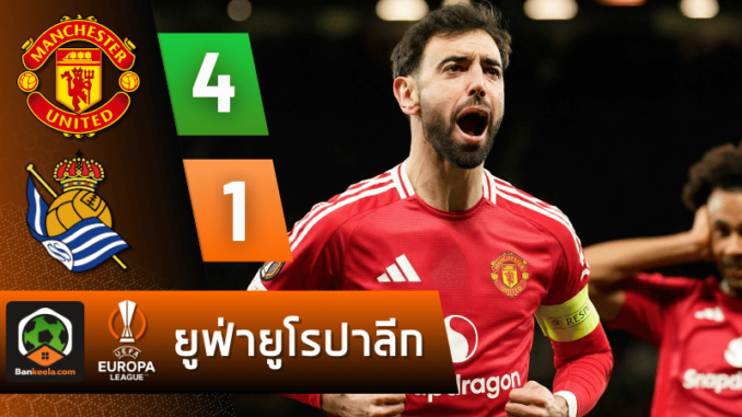 แมนเชสเตอร์ ยูไนเต็ด โชว์ฟอร์มสุดโหด เปิดรังโอลด์ แทรฟฟอร์ด ไล่ถล่ม เรอัล โซเซียดาด ขาดลอย 4-1 รวมผลสองนัด 5-2 ตีตั๋วเข้าสู่รอบต่อไปของ ยูฟ่ายูโรปาลีก ได้อย่างสมศักดิ์ศรี เกมนี้ บรูโน่ แฟร์นันด์ส งัดฟอร์มเทพ กดสองจุดโทษก่อนซัดปิดท้ายให้ทีมคว้าชัยแบบขาดลอย ขณะที่ฝั่งทีมเยือนเสียเปรียบหนักเมื่อ จอน อรัมบูรู โดนใบแดงในนาทีที่ 63 ทำให้สถานการณ์ย่ำแย่กว่าเดิม ก่อนโดนแมนยูลงโทษแบบไร้ปรานี ด้าน ผลบอลสด นัดนี้สะท้อนถึงพัฒนาการที่ยอดเยี่ยมของปีศาจแดง ภายใต้การคุมทีมของ รูเบน อาโมริม