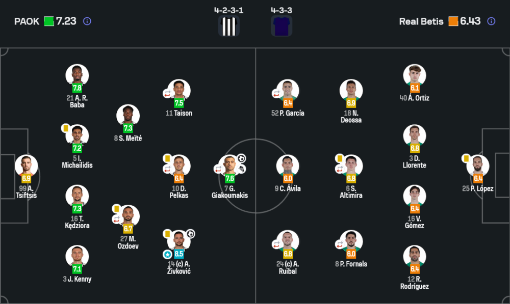 • อันโตนิส ซิฟต์ซิส (6.9) เซฟสำคัญหลายครั้ง ช่วยทีมรอดจากแรงกดดันของเบติส