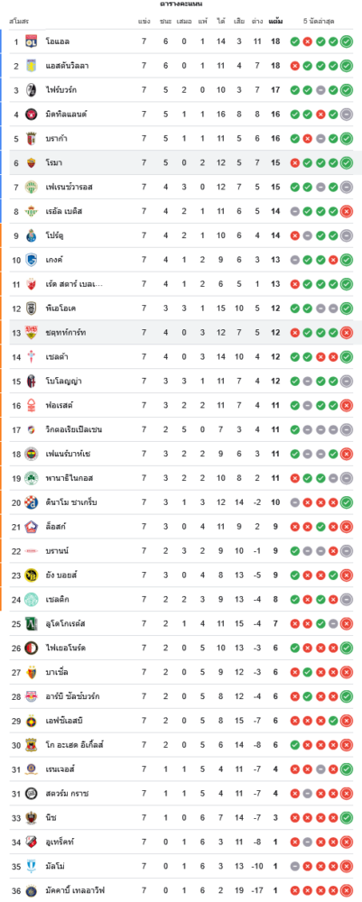 🏆 สถานการณ์ในตารางคะแนนยูโรปา ลีก