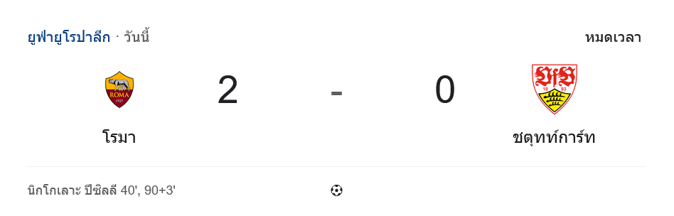 ค่ำคืนฟุตบอลยุโรปที่กรุงโรม สนามโอลิมปิโก้ร้อนระอุเมื่อ “หมาป่ากรุงโรม” เปิดบ้านรับมือสตุ๊ตการ์ทในศึกยูฟ่า ยูโรปา ลีก เกมนี้แฟนบอลเช็กสกอร์แบบเรียลไทม์ผ่าน ผลบอลสด กันเพลิน เพราะรูปเกมเปิดแลกกันตั้งแต่นาทีแรก ก่อนจบลงด้วยชัยชนะ 2-0 ของเจ้าถิ่นจากการเหมาคนเดียวสองประตูของ นิคโคโล ปิซิลลี ดาวรุ่งหน้าใสแต่ใจโคตรเหี้ยมของโรม่าที่ขโมยซีนทุกคนในสนาม