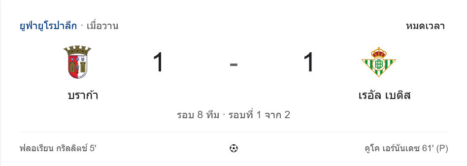 แม้รอบนี้จะไม่ได้แข่งแบบลีก แต่ผลเสมอ 1-1 ทำให้สถานการณ์ของคู่นี้ยังเปิดกว้างเต็มที่ บราก้าเสียดายที่ไม่สามารถกุมความได้เปรียบในบ้าน ส่วนเบติสถือว่าได้ผลที่พอใจ เพราะกลับไปเล่นเลกสองด้วยสกอร์ที่ยังมีลุ้นทุกทาง เกมหน้าใครคมกว่า มีสิทธิ์เข้ารอบรองชนะเลิศทันที