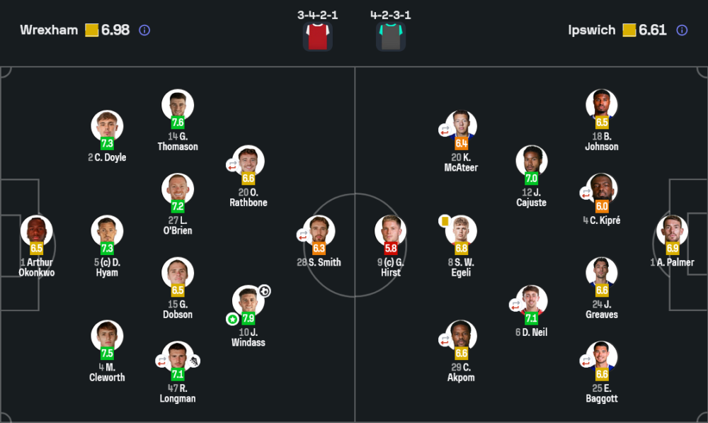 เชิงแท็กติก เร็กซ์แฮมยืนระบบ 3-4-2-1 เน้นเกมรับแน่นแล้วเปลี่ยนจากรับเป็นรุกเร็ว วินดัสส์กับลองแมนคอยลอยในครึ่งช่องระหว่างไลน์รับกับไลน์กลางของอิปสวิช เมื่อได้บอลก็เปิดสปีดพุ่งเข้ากรอบเขตโทษทันที จุดนี้คือเหตุผลที่ประตูขึ้นนำในครึ่งแรกเกิดจากจังหวะเปลี่ยนแกนเร็วและการเคลื่อนที่ฉลาดของวินดัสส์