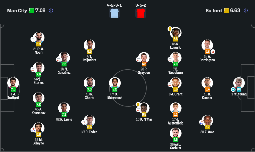แม้ทีมจะเป็นฝ่ายแพ้ แต่รางวัลนักเตะยอดเยี่ยมของเกมนี้ต้องยกให้ แมตธิว ยัง นายทวารของซอลฟอร์ดแบบไร้ข้อโต้แย้ง เซฟไปหลายครั้งทั้งลูกยิงไกลจาก แชร์กี, โฟเดน, กอนซาเลซ รวมถึงจังหวะจ่อๆ ของ โอ’รีลลี ถ้าไม่มีเขา สกอร์อาจไหลเกินสามสี่ลูกแน่นอน