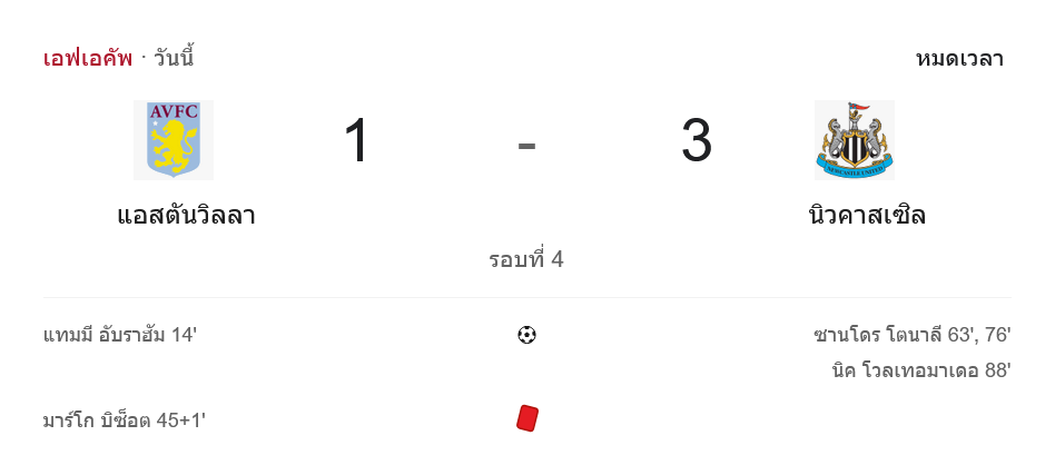 จาก : ผลบอลสด เอฟเอ คัพ อังกฤษ ระหว่าง แอสตัน วิลล่า 1-3 นิวคาสเซิ่ล วันนี้ 15/2/69 – บ้านกีฬา