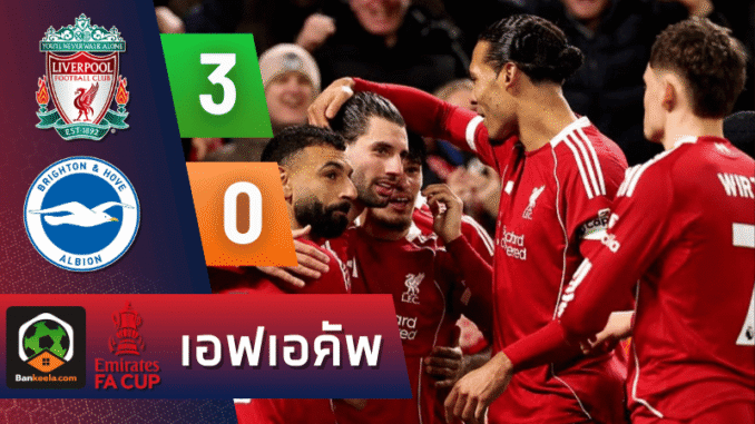 จาก : ผลบอลสด เอฟเอ คัพ อังกฤษ ระหว่าง ลิเวอร์พูล 3-0 ไบรท์ตัน วันนี้ 15/2/69 – บ้านกีฬา