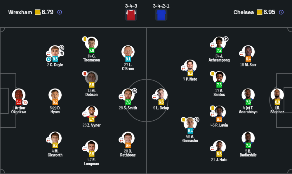 คัลลัม ดอยล์ คือผู้เล่นเด่นสุดของเกมนี้ แม้เร็กซ์แฮมจะตกรอบ แต่เจ้าตัวทำประตูสำคัญ เล่นเกมรับแน่น และสู้ทุกจังหวะจนได้คะแนนสูงสุด 8.5 เป็นคนที่แบกเกมของเจ้าบ้านเอาไว้ได้อย่างชัดเจน
