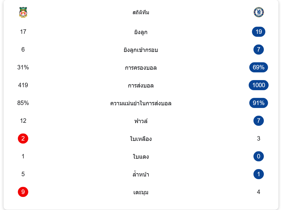 เชลซีใช้ 3-4-2-1 ครองบอลเหนือกว่าชัดเจน ต่อบอลมากกว่าและนิ่งกว่า โดยเฉพาะเมื่อเกมเข้าสู่ช่วงต่อเวลา จุดต่างสำคัญในมุม วิเคราะห์บอล คือคุณภาพเชิงลึกของขุมกำลังทีมเยือน เมื่อคู่แข่งเหลือ 10 คน เชลซีเปิดพื้นที่โจมตีได้คมขึ้นทันที และปิดเกมได้เด็ดขาดกว่า