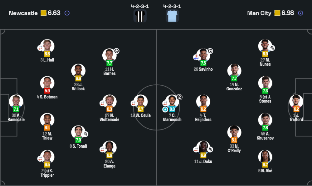 มาร์มูชคือผู้เล่นที่เปลี่ยนเกมของจริง เขายิง 2 ประตูสำคัญ พาแมนฯ ซิตี้จากทีมที่กำลังสู้กลับ กลายเป็นฝ่ายคุมเกมแบบเบ็ดเสร็จ คะแนน 8.8 สูงสุดในสนาม และสมกับตำแหน่งผู้เล่นยอดเยี่ยมประจำแมตช์ทุกประการ