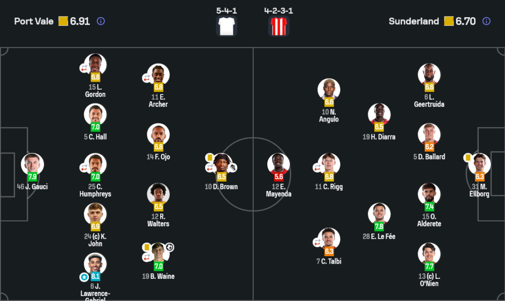 จอร์แดน ลอว์เรนซ์ กาเบรียล คือผู้เล่นยอดเยี่ยมของเกมนี้ด้วยคะแนน 8.1 เขาเล่นได้ทั้งแน่นและดุดัน เติมช่วยเกมรุกดี แต่ที่เด่นสุดคือการรับมือเกมริมเส้นของซันเดอร์แลนด์ได้อย่างแข็งแกร่ง ทำให้ทีมเยือนเจาะฝั่งเขาได้ยากตลอดทั้งเกม