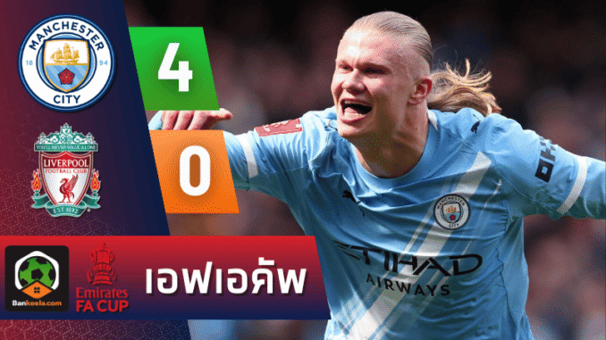 บ้านผลบอล สรุปหลังเกม เอฟเอ คัพ อังกฤษ เดือดไม่ไว้หน้า ฮาลันด์กดแฮตทริกพาแมนซิตี้ถล่มลิเวอร์พูล 4-0 ลิ่วตัดเชือกแบบโหดจัด
