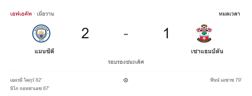 จาก : ผลบอลสด เอฟเอ คัพ อังกฤษ ระหว่าง แมนซิตี้ 2-1 เซาธ์แฮมป์ตัน วันนี้ 25/4/69 – บ้านกีฬา