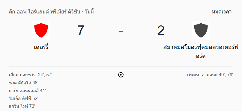 - นาทีที่ 95: กรรมการเป่าหมดเวลา เดอร์รี่ ซิตี้ เปิดบ้านถล่ม วอเตอร์ฟอร์ด 7-2