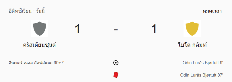 - หมดเวลา: คริสเตียนซุนด์ 1-1 โบโด กลิมท์