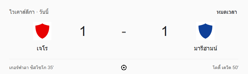 รายงานการแข่งขัน: เจโร 1-1 มารีฮามน์