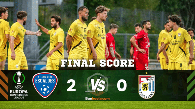 ศึกยูฟ่ายูโรปาคอนเฟอเรนซ์ลีก รอบคัดเลือก รอบแรกเลกแรก บ้านกีฬา ขอสรุป ผลบอล สุดมันระหว่าง “แอทเลติก เอสคาลเดส” เปิดบ้านอัด “เอฟ 91 ดูเดแล็งก์” ไปอย่างดุดัน 2-0 เกมนี้เจ้าถิ่นออกสตาร์ทแรงใส่ไฟทุกนาที คุมความได้เปรียบก่อนเลกสองแบบสุดมัน!