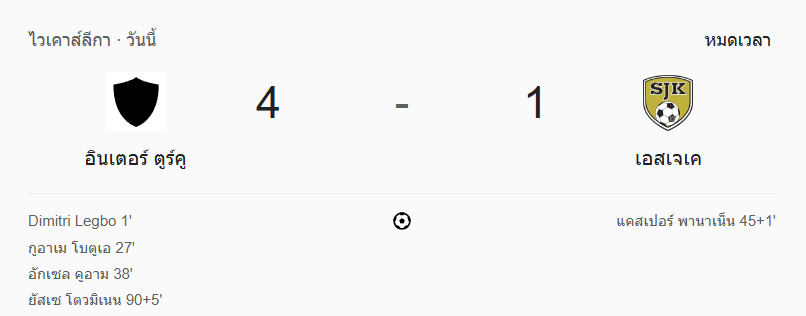 - นาทีที่ 90+5: GOAL! ยัสเซ่ โควินเนน ยิงปิดกล่องให้ อินเตอร์ ตูร์คู หนี 4-1 สุดมันส์
