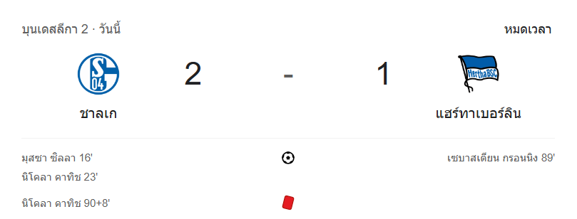 บ้านกีฬา ขอสรุปผลบอลสด บุนเดสลีก้า 2 เยอรมัน คู่ระหว่าง ชาลเก้ 04 เปิดบ้านเชือด แฮร์ธ่า เบอร์ลิน 2-1 แบบเข้มข้นทุกวินาที เกมนี้เป็นมากกว่าฟุตบอลธรรมดา ทั้งความดุเดือดของสองทีมยักษ์ใหญ่แห่งลีกเมืองเบียร์ และการเดินเกมที่เร้าใจตั้งแต่นาทีแรกจนถึงจบ 99 นาทีเต็ม!