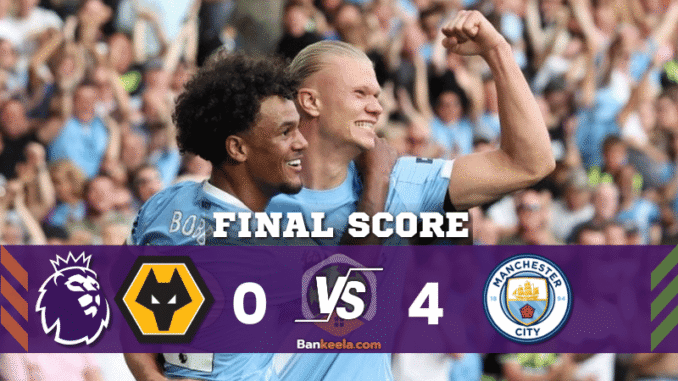 แมนเชสเตอร์ ซิตี้ โชว์ฟอร์มสมราคาแชมป์เก่า ไล่ถล่มวูล์ฟแฮมป์ตัน 4-0 คว้าสามแต้มกลับบ้านแบบสบายๆ โดยฮาแลนด์ยิงคนเดียวสองประตู พร้อมคว้ารางวัล Man of the Match ขณะที่วูล์ฟต้องกลับไปแก้เกมรับอย่างเร่งด่วนหากไม่อยากตกไปอยู่ในโซนล่างของตาราง