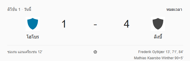 รายงานการแข่งขัน: โฮโบร 1-4 ลิงบี้