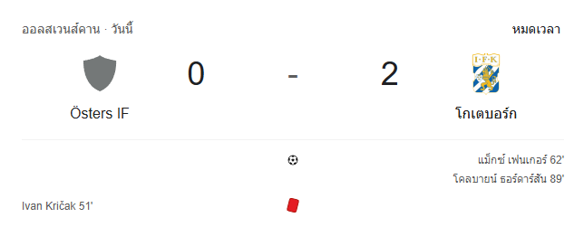 • หมดเวลา: Östers IF พ่ายคาบ้าน 0-2 ต่อ IFK Göteborg หลังโดนทั้งใบแดงและความเด็ดขาดของแนวรุกทีมเยือนในครึ่งหลัง