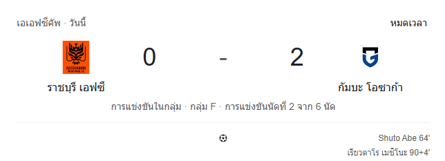 • นาทีที่ 95: จบเกม! ราชบุรี เอฟซี พ่ายคาบ้านให้ กัมบะ โอซาก้า 0-2 เก็บแต้มไม่ได้ในเกมที่สู้กันอย่างดุเดือด